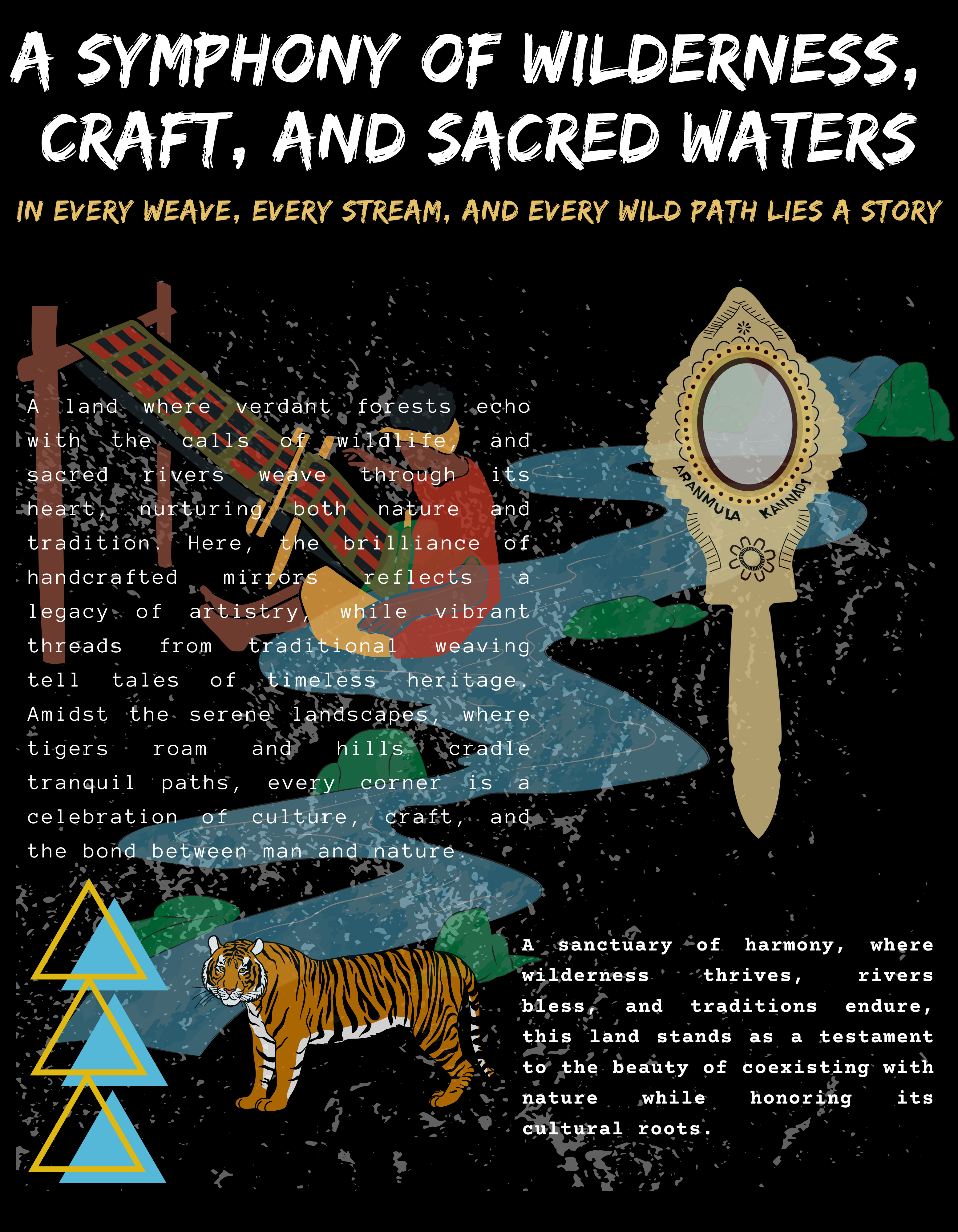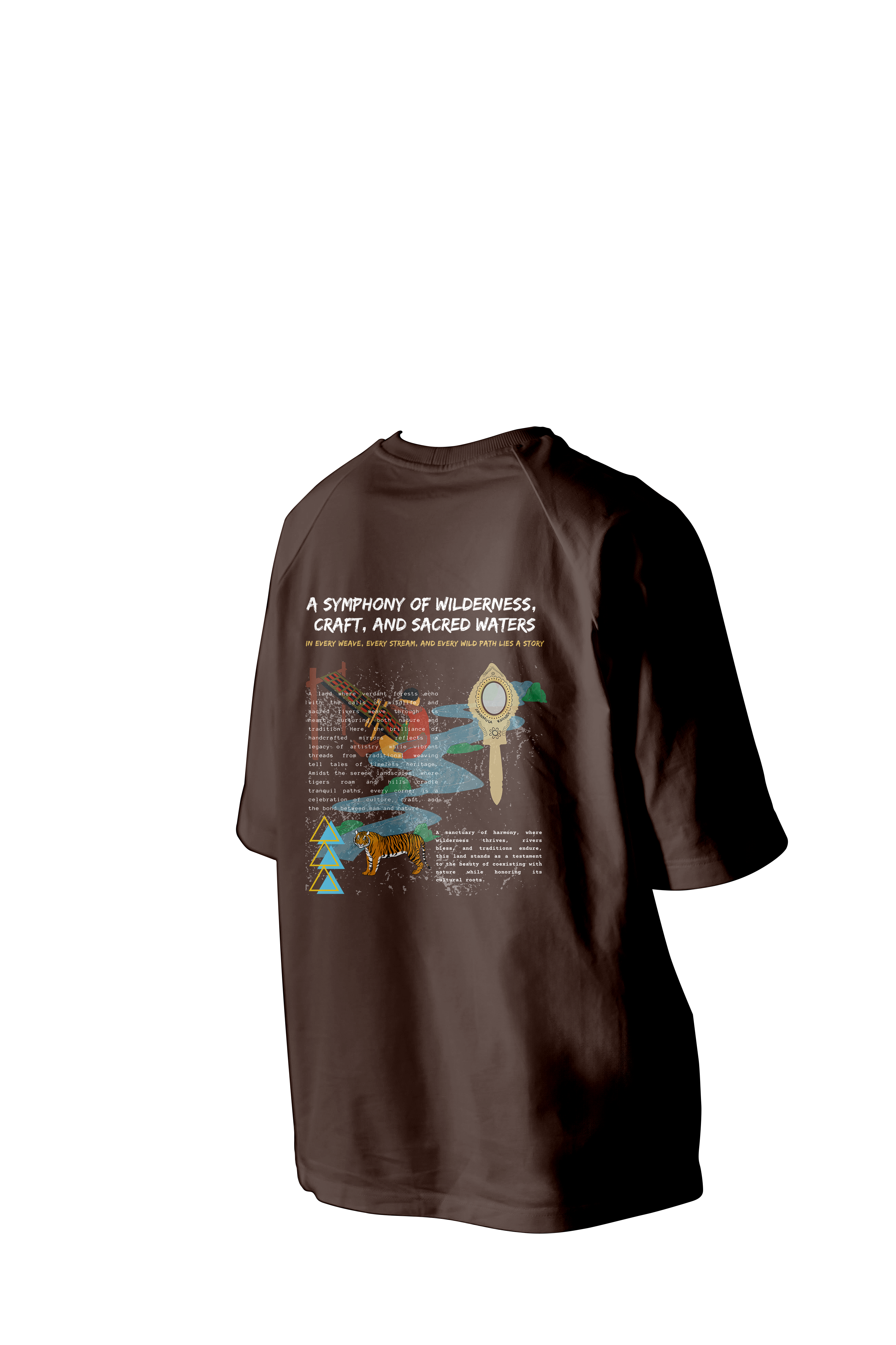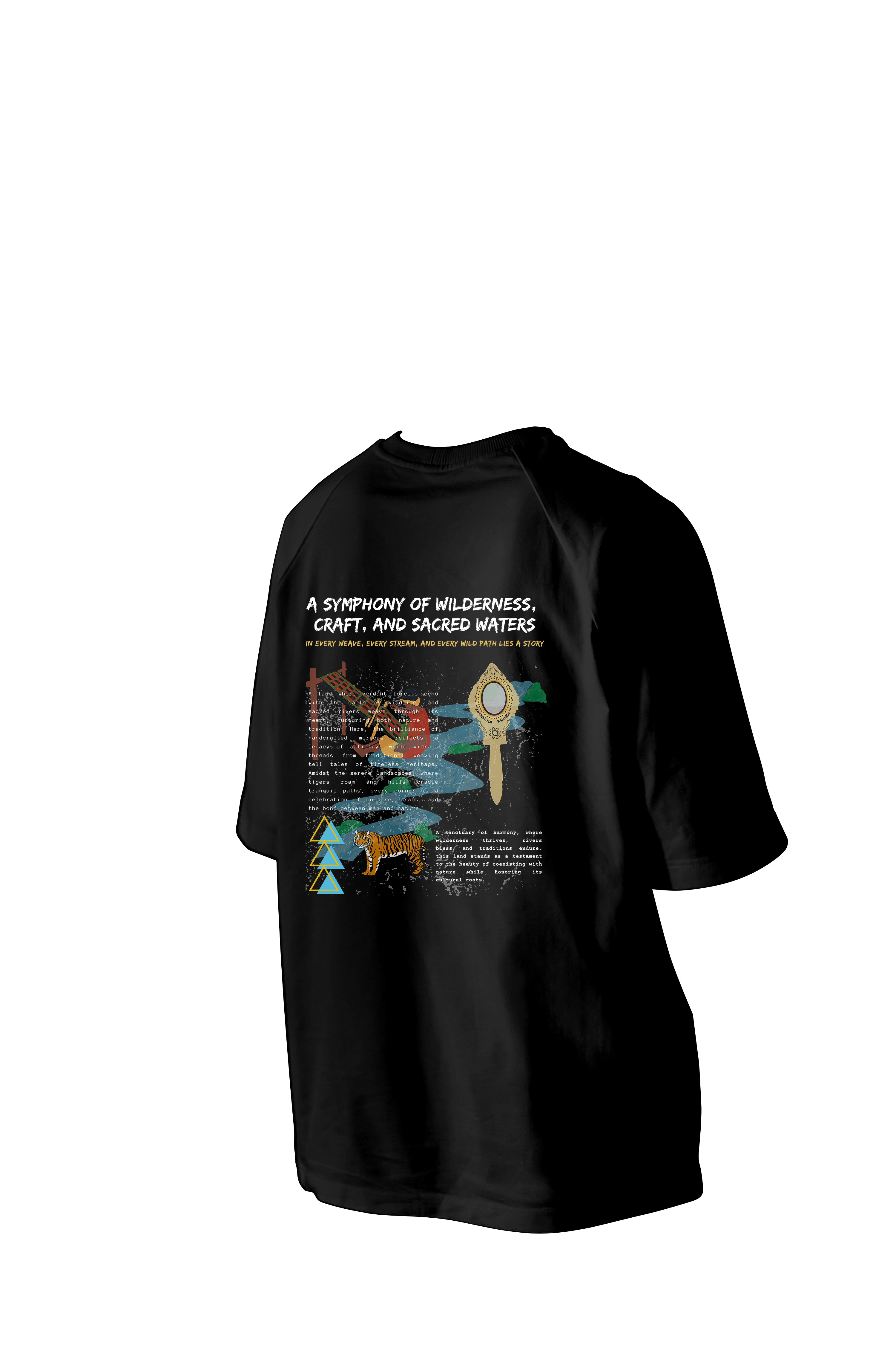 Step into a realm of wilderness and tradition with our Pathanamthitta Tee, where every element is a tribute to its rich heritage and untamed beauty. From the intricate grace of Aranmula Kannadi to the flowing rivers and lush forests teeming with life, this design embodies harmony between craft and nature. Crafted for comfort and style, this tee offers a perfect blend of cultural elegance and modern fashion.