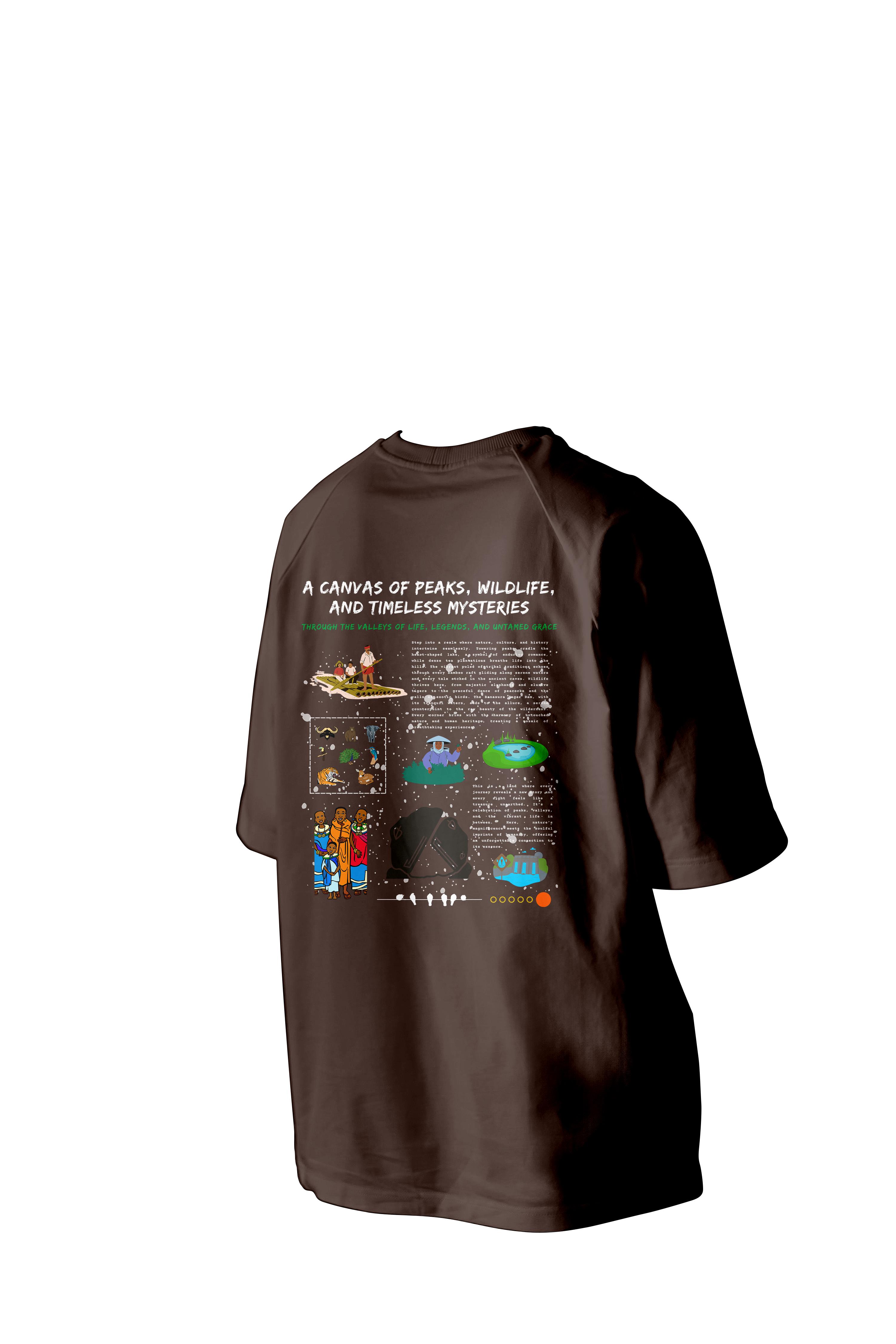 Embrace the serene beauty of misty peaks, lush wilderness, and timeless traditions woven into this captivating design. With its soft fabric and impeccable fit, this tee offers unmatched comfort while elevating your everyday look. Step into a perfect blend of nature’s grace and contemporary fashion, crafted to inspire and endure.