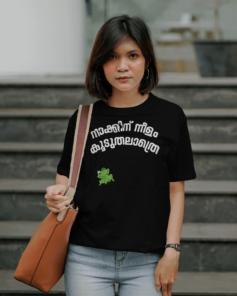 " നാക്കിന് നീളം കൂടുതലാത്രെ " This design captures that lively spirit with a cheeky frog sticking its tongue out, perfectly embodying the humor and charm of being outspoken. It’s a bold nod to the unapologetic personalities who aren’t afraid to speak their minds. Wear it loud, wear it proud—because some stories are meant to be told, over and over again!